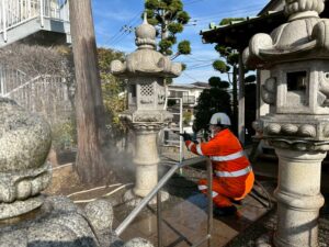 【横浜市戸塚区 境内清掃】横浜市戸塚区にて、灯篭や参道、記念碑等の石材の清掃を実施しました。長い期間風雨に晒される事により生じる、埃や汚れ、苔やカビ等を高温水で丁寧に取り除いていきます。参拝される方にとって気持ちの良い空 […]